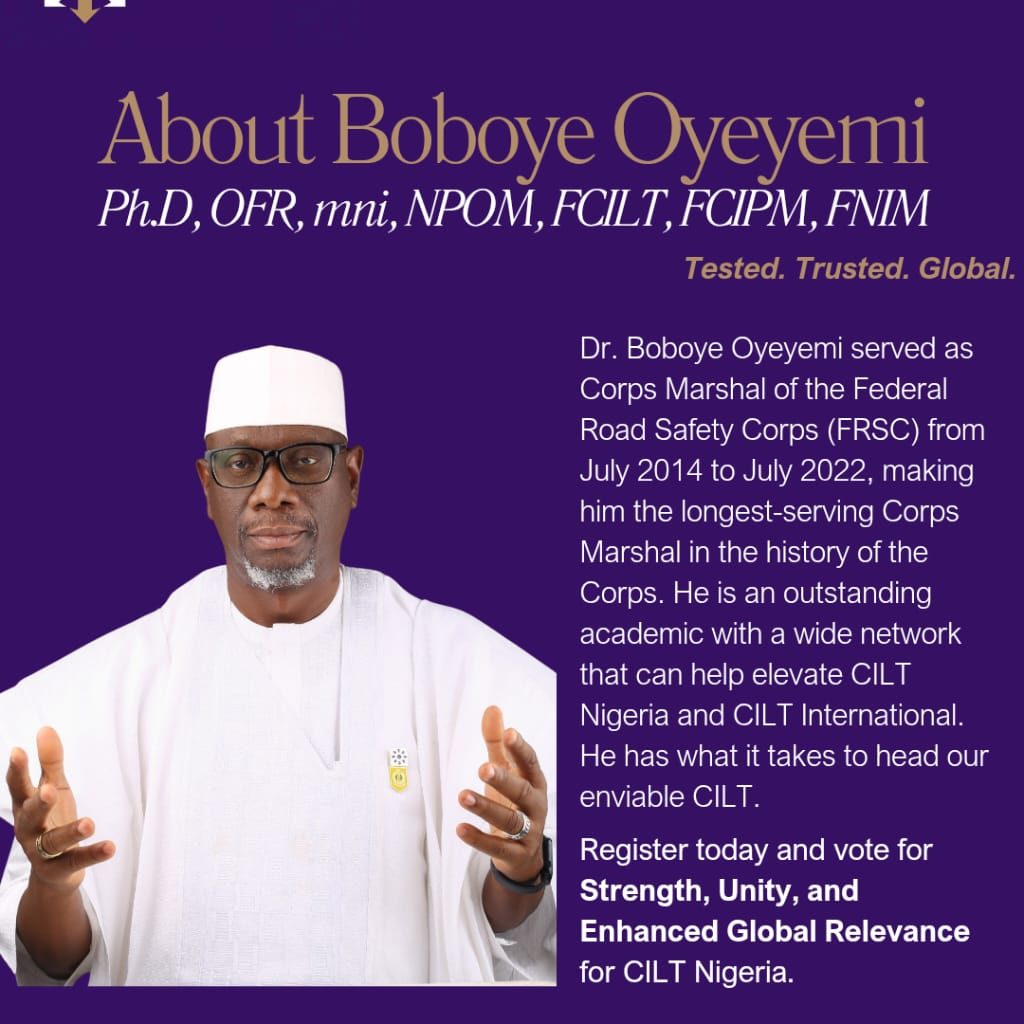 IN ORDER TO CONTINUE THE REALISATION OF THE DREAM OF THE FOUNDING FATHERS OF CILT, VOTE DR. BOBOYE OYEYEMI Post Views: 94